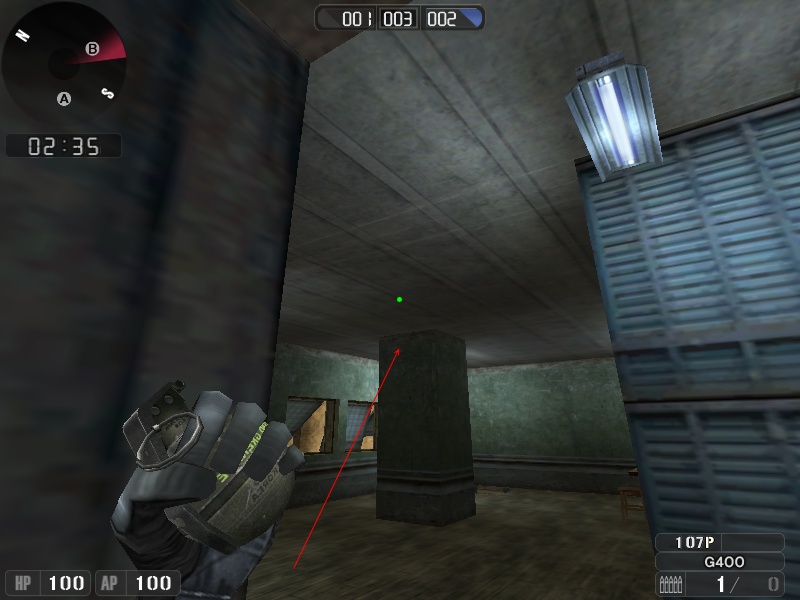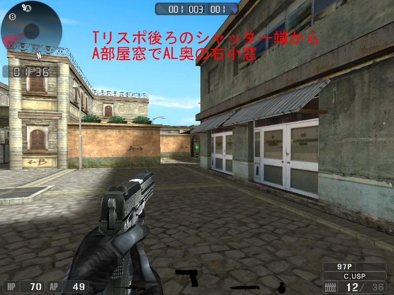 ここから打つと、A橋奥の小窓から撃ってるやつを落とせます。